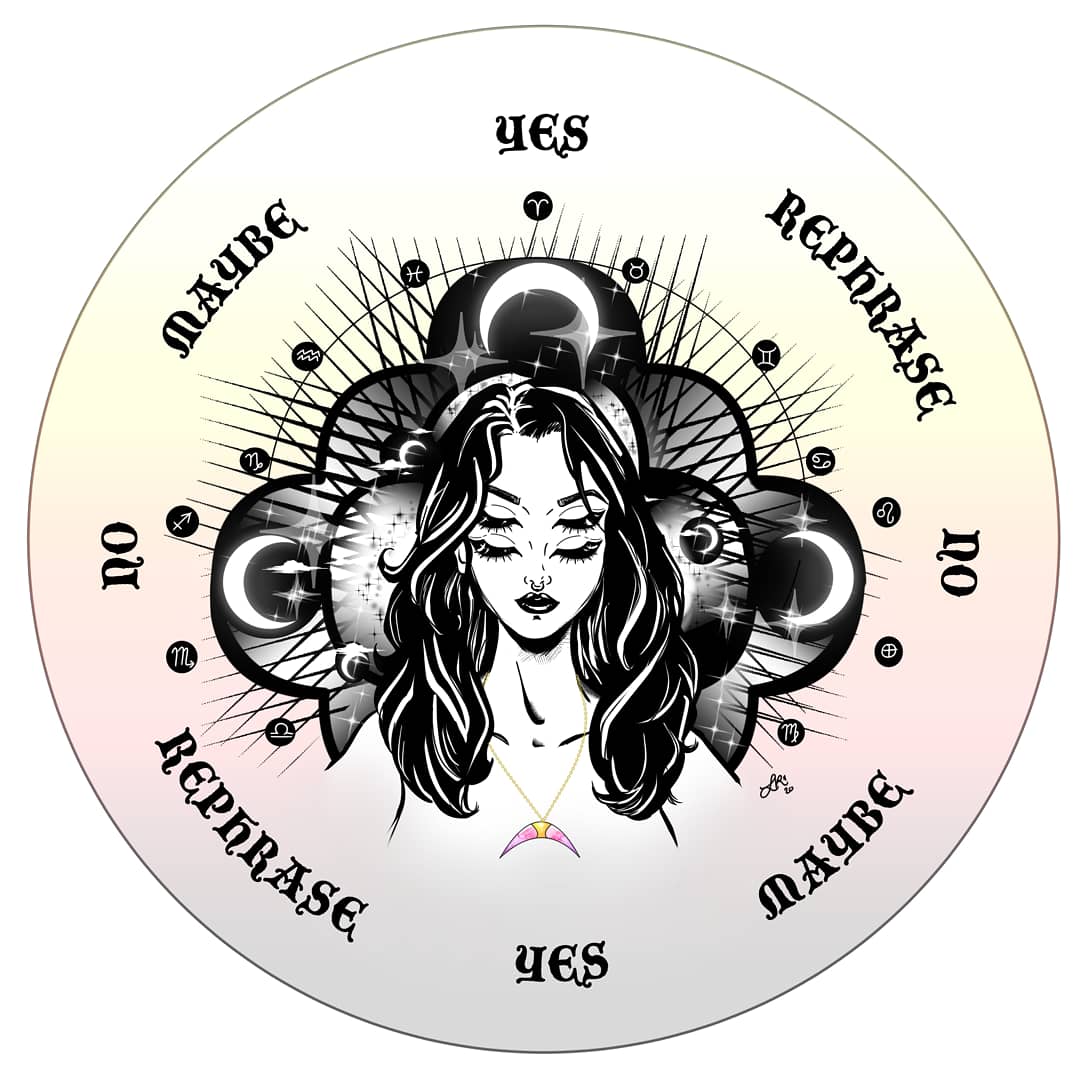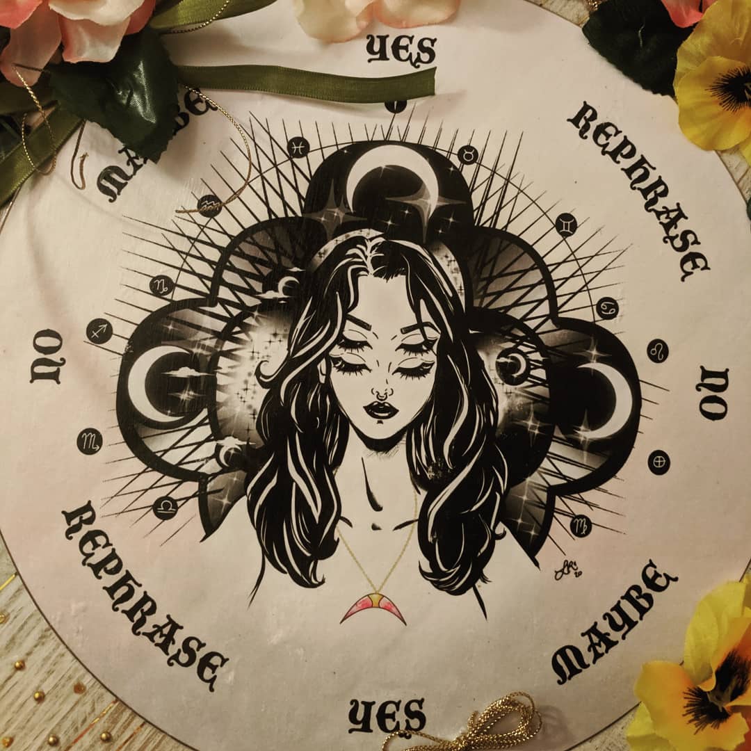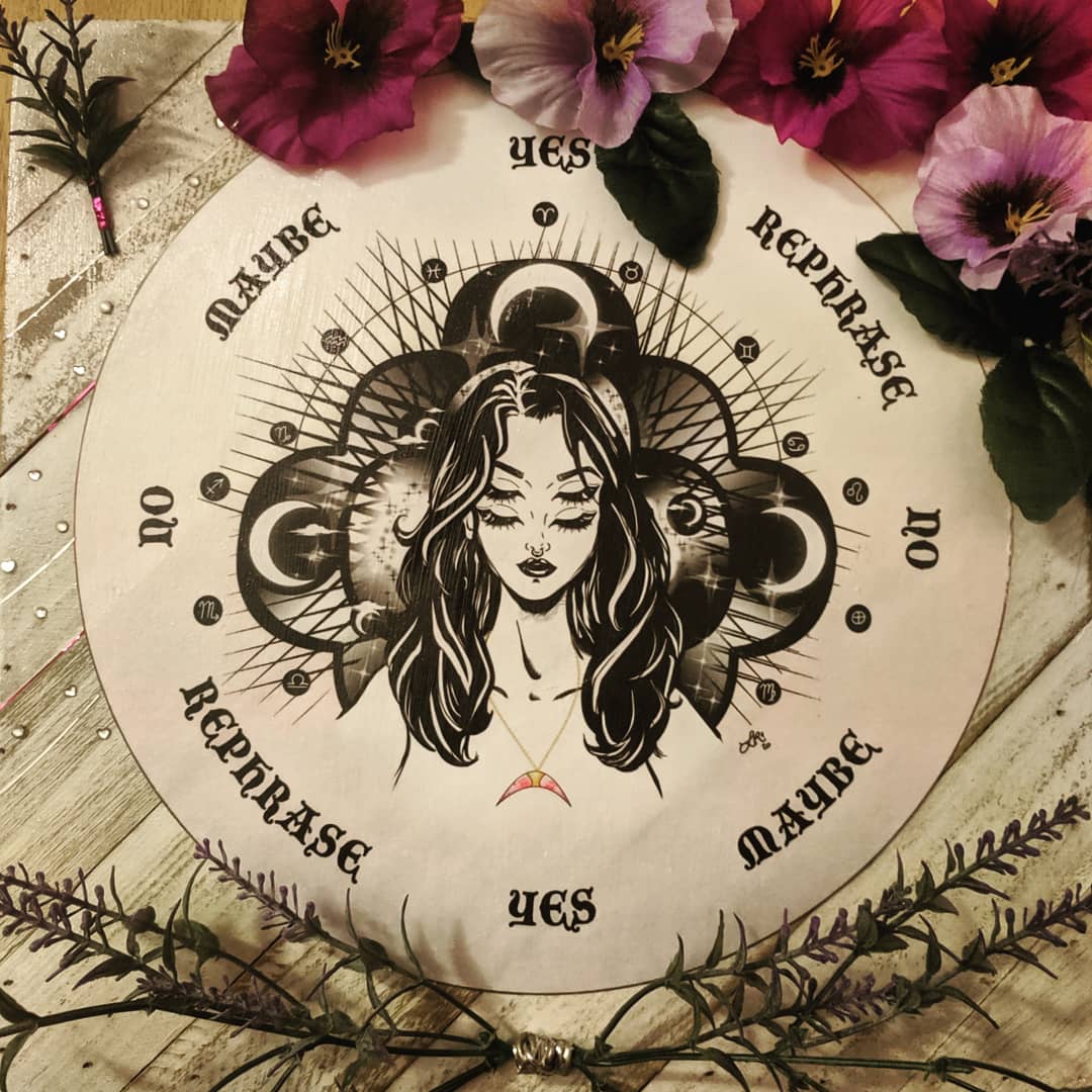 3. Astral Woman pendulum board: based on a witchy reseller’s pendulum board, with some major improvements and embellishments.